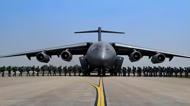 美国空军的C-17运输机,被誉为“环球霸王”,每架能够搭载500至600名士兵,并可执行长途运输任务。